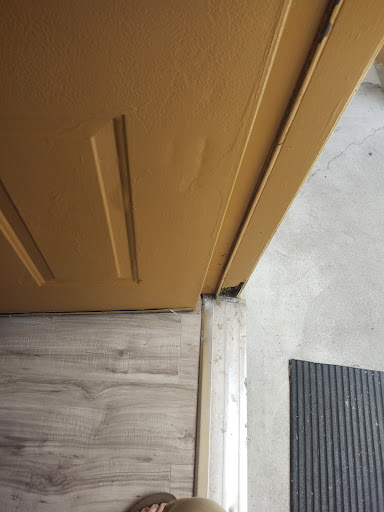 It only got worse from there. The “King Suite” in the pictures had sheetrock damage, partially painted walls, cracked light switch covers, wall lamps over the bed that had the light bulbs laying in the fixture but not screwed i, a filthy ancient ac unit that rattled and squeaked, poorly installed vinyl plank flooring that was warped, and cheap vinyl blinds in the only window that were warped with no curtain or drapes for privacy.