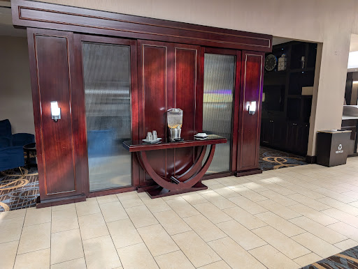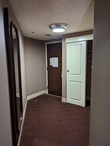 There was holes in the chair sitting off to the side of the room on both the Ottoman and the arm of the chair. Called down and spoke to Jessica about getting new linens and pillow cases for the bed. The housekeepers came to the room and we showed them the linens. We were able to communicate with the responding housekeeping staff and they were great. They brought towels for the bathroom that were missing as well as cleaned up the space before leaving. Those three ladies deserve credit for being what this hotel needs to keep customers happy with excellent after hour service. I noticed that there was a visible presence of a security patrol in the parking area. There was a lot of handicapped parking areas with accessible ramp and wide doorway to utilize. The elevator was efficient and there wasn't wasted time waiting on the ground level or any other level I checked. The fitness center was a well equipped and easily accessible location on the lower level. All of the machines were functional and in-service. There was a water dispenser inside the area for use. The was a small water dispenser in the lobby with citrus fruit added, so I checked it to see if it tasted old or inadequate. It was mild and adequate without overpowering taste nor sugar in the water. The exterior pool gate was closed and padlocked, but the pool appeared clean and functional. There was office space and meeting space throughout the lower level with television, telephone, computer...