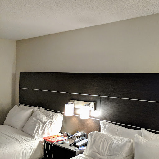 Read moreUpon appearance, this hotel is nice. The room is clean. The bathroom was clean and modern. Seems as if others' reviews talked about outdated rooms... I didn't feel that at all. The king size bed is comfy, although the pillows are not (way too soft and squishy for my liking)... We arrived around 10:30pm, and around 11:30pm, as I was trying to fall asleep, it was quite loud outside (we could hear people yelling), and we could hear the sounds of traffic throughout the night, so I'm assuming there isn't much by way of soundproofing... and that was all with the blower from the fan unit on high. Around 4:45am, I was awoken from a deep sleep by what I can only assume is the loud clang of pipes warming up from another guest's shower!! Around 5:04am, the clanging finally stopped, but this weird electrical buzzing started... I would have thought it was some sort of cricket if it wasn't so inconsistent and coming from the room... Around 5:30am I heard other sounds, what I can only describe as the sound made by jeans in the dryer... against our door. The only thing that stopped me from leaving was the fact that the man who checked us in said they were still doing free continental breakfast. But wait, there's more. What he did NOT tell us was that there would be no hot food, only grab-and-go items like muffins, cereal, and fruit. I would think that would be something you'd want to inform your guests about, especially when they ask about breakfast! So a bad night's sleep and no hot breakfast... but as I said... at least the bed...