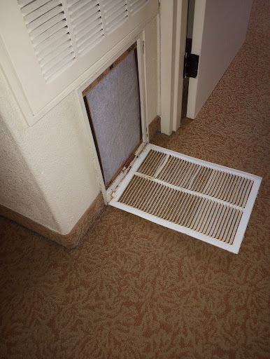 Read moreI wish we would have paid better attention to the reviews before booking. I DO NOT recommend this place. After a 15-hour drive, through the night, we arrived at the hotel at about 6 pm. We traveled with another family who also booked a room here. We checked in and were given room 317. Arriving at the door to the room was the first clue to the type of lodging . The paint on the door was peeling from being painted over and over. There were obvious peeled layers that had just been painted over. We walked in, and the room smelled musty, like stale cigarette smoke. We immediately found stains on the wall, cigarette ash on top of the "clean", made up, bed and there was a hole in the ceiling above the shower. The beds were also very low to the ground and looked lumpy. My husband went and asked for another room. My brother was actually at the front desk when he arrived, asking to be moved because their bathroom door wouldn't close. We were both moved to the 4th floor. That door was fine, but we walked in and found a patch of missing carpet right in front of the door. Our family was being picked up at 7 pm, so we dropped our bags and left in a hurry and didn't look around. When we got back at 11 pm, exhausted and ready to shower and go to bed, we started to notice other things. The carpets (in both rooms) are horribly stained. The second room we were in had missing patches in different places on the carpet. There was hair on the bed, and stains on the wall. We went to my brother's room, and they said they were packing up and going to leave because they saw a roach in the pool area when they took their son swimming. The young lady at the front desk offered to move us again, but by this point, we would rather just sleep on our cars. She very apologetically said she would let housekeeping know and recommended their sister hotel next door. While their issues go way beyond housekeeping, we appreciated her efforts in trying to make things right. I will give her props for her professionalism and efforts, but that is the only positive thing...
