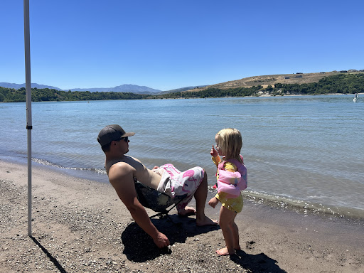 Great spot. Family friendly. Bathrooms. Downside: you have to drive down to the beach area $20 per vehicle or $3 per person. If you just need to drop off things to the beach area even though you are not parking they will charge you $20. So if you have paddle boards and kayaks and are bringing more than one vehicle you can park at the top alongside the road and walk down with everything or pay $20 per vehicle. It's a steep walk but there is a walkway for foot traffic and a paved road...