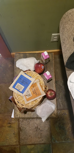 The next morning there was a gentle knock on the door - Raj had delivered a wicker basket with scones, fruit, a few packets of instant oatmeal and some juice. The wife and I went out on the balcony and relaxed in the Adirondack chairs while we sipped coffee and ate our fresh breakfast while we watched woodpeckers, stellar jays and squirrels play on the trees.