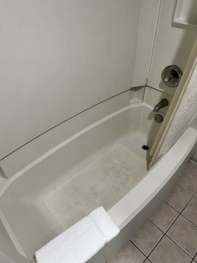 Ā Ā Ā Read moreTough to Give It One Star We regularly stay at typical 2-3 star, budget friendly hotels traveling to a destination and in general, they are OK and serve a purpose - to get a good sleep, shower and leave. If fewer people would boycott this particular place, maybe they would get their act together and make it a better place. There is adequate parking and check in and out was very smooth. As soon as we entered the room, there's an odor. Not sure what it was, but we suspect some cleaning solution used to cover up cigarette smoke smell. Not a heavy odor, but noticeable and we became used to it after a few minutes in the room. The king bed and pillows were great and we slept well. That's where they earn our one star. The carpet is filthy. Walk through the room just a few times in bare feet and get in the shower and you'll see streams of black dirt run into the drain from your feet. DO NOT WALK AROUND HERE IN BARE FEET!!! They have had painters in the room not long ago and these painters may know how to lay paint on the walls, but have no clue how to wipe up paint drips onto the floor, furniture, towels bars, tub, tub surround, toilet, etc. Drips and brush swipes all over. The painters moved the furniture, but left paint smudges on the furniture with their fingers. Not sure what happened, but the paint on the ceiling was peeling off along one wall. Not sure what happened to the towel rack in the bathroom, but clearly nobody at this hotel is concerned about the damaged condition it is in. And then there's the lighting over the bathroom sink area. Look up and you see the exposed light fixtures and armored cables. The exhaust fan in the bathroom needs a little oil, or be replaced. It squeals and moans and groans for awhile, then quiets down. I guess they feel guests won't mind. Oh and the metal bases on the nightstand lamps have started to corrode, possibly from humidity. ANYTHING ELSE GOOD? The in-room fridge was clean, had a freezer compartment and was cold and the AC worked well. We were there only 2 nights and pretty much slept and showered there. No way would we...