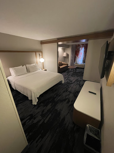 Read moreThis isn't a luxury setting but you'd never know that. Although the room was a touch snug, it was totally workable, very nice, well-equipped with a great office chair and desk for work plus an added chair to relax in. All the storage, furnishings and amenities were in great shape, handy and met any traveler's needs and the hallways were cheerful with nice carpeting. Best of all, the staff was 5-STAR and very responsive. Breakfast simply could not be better; many options no matter what your preferences. The quality food was hot, abundant, well looked after and constantly refilled and the seating area accommodated many people and was very nice. It was an especially nice situation for families. Frankly I've never had a better breakfast experience even in more expensive hotels and restaurants - even other Marriotts and bigger facilities. The exercise equipment wasn't extensive but it was there and well kept and the pool looked very nice, making us wish we'd brought our suits. There was also a washer/dryer available which, to me, is a very big deal when you're on the road for a few days. Also the registration and checkout experience was a breeze and another Marriott helped us set up an immediate checking. We felt well taken care of in every way! The building doesn't look especially fancy or unique but it's a great experience and a handy location, even though it might look a little out of the way. It's easy to get to other spots because of the Interstate, which is in sight of the hotel. I wish there had been a restaurant in the hotel, although there were snacks available at the front desk. But good dining options of a variety of types are plentiful across the street at a varying price ranges. We had excellent meals right across the street. The hotel is also near a good bit of quality shopping, since it's opposite a large shopping center. I am confident that you would have a happy stay at this hotel. For some reason this comment lists our age range as 18-25 but we are both adults with a lot of hotel...