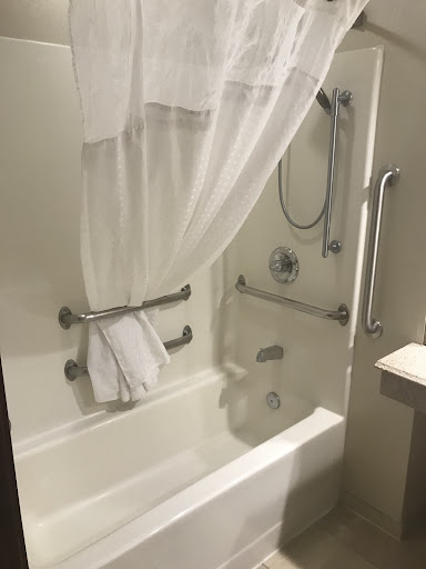 Cons There was an unusually high number of people that appear to be loitering in the parking lot and near the entrance Only one elevator, which wouldn't be a huge deal if not for the fact that it is simultaneously the slowest elevator on the planet. This building is only about 4 floors high but the elevator ride feels like there's twice as many floors The in-room AC unit was obnoxiously louder than expected. It did put out cold air but it sounded like something was wrong with it. The toilet doesn't flush well at all. Double flushing was always a requirement. The sink was clogged and drained very slowly but did eventually drain. The tub was absolutely gross. Caked on dirt/grime stains in every crevice. The bottom of the tub was caved in with a pool of water that couldn't drain. It was very difficult to shower without standing in a pool of filth. Having the bathroom vent running makes the tub shake wildly. Bathroom lighting was terrible as the lights take a really long time to warm up and even after warming up the light don't shine where you adequately see yourself in the mirror. The lights are on the left and right sides of the mirror as opposed to being above or pointing towards your face. The heat lamp in the bathroom looks like it needs to be replaced. The building itself is in serious need of touch up or a full-on remodel. The carpet is dated and the wallpaper was peeling at a lot of seems in our room. The WiFi signal in room fluctuated a lot. One moment I was connected fine and then a few minutes later it would disconnect and then reconnect. Speed tests show ~10 Mbps down and 20 Mbps up. Not bad but I've seen much better in other Holiday Inn Express hotels. The TV is way too small for a room this size. Good luck watching TV while in bed. Most of the buttons on the remote control didn't work. Only functional buttons were the power, channel up, number keys 1, 2, 6, 9, and 0. The volume up/down buttons work intermittently. The channel down and the other number keys didn't work. Parking is shared with the neighboring hotel so spaces are very limited. I ended up parking in the back where there wasn't much light.
