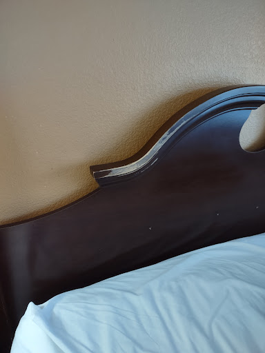 Read moreWE FOUND A COCKROACH IN OUR ROOM! My friends and I checked into this place after driving down from Canada. When we first arrived we spend over half an hour trying to check-in because the staff couldn't figure out their system. Once we were checked-in the elevator rattled and droned on, seeming to struggle even taking 4 people up to the second and third floor. There were multiple occasions where we walked into the elevator, hit the button to go down to the first floor, felt the elevator move for a bit and when the doors opened we came back up to the second floor! Our rooms were something else too. We had two rooms with king-sized beds. The rooms had water damaged ceilings, cracked and broken tiles on the bathroom floor (which you could easily cut your foot on), vandalized the shower walls (someone drew with markers), holes in the shower walls, bedsheets that didn't fit the beds and kept coming undone, pillows that were fit for a couch rather than a bed because they were so small and blinds that couldn't close and let a lot of light in. HOWEVER, the best part about our rooms were that we found an actual cockroach in there! We came back from the basketball game in downtown Indiana and turned on the lights to find a happy little roommate scurrying on the walls. We instantly killed it and informed the front desk about it. The lady seemed very concerned and came up to see it. She apologized for it, which is a step in the right direction, but threw her hands up in the air and said that the hotel doesn't have any other rooms available for us to move to. If we stayed in the room we would also get charged for it too. Since we had friends staying in the same hotel and didn't have access to a car we didn't really have a choice. Morning rolls around and we come down to check out and speak with a manager. Lisa was working and "addressed" our concerns. We told her what happened and she just said "yup" in a straight face and proceeded to tell us that someone must have brought in the cockroach. She literally had no reaction to this issue whatsoever and it honestly seemed like a regular occurrence here. Needless to say, we will not be staying...