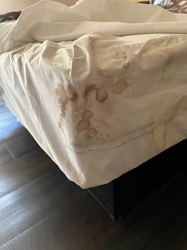 Please, for the love of God, do not stay here. I spent less than 10 minutes in this building because I was so desperate to get out! Any time I go to hotels or motels, or anywhere, that isn’t my home, I check the bedding, and thankfully, I made no exceptions. When lifting the sheets I found what looked like bodily fluid stains by the headboard, and more bodily fluid stains on the corner of the “mattress protector.” Yes, I was on a budget when booking this place, and almost convinced myself to just sleep on the floor. But I was staying for 3 nights and felt like sleeping on a bed wasn’t a hard ask. I grabbed my bags and went right back to the desk to give my keypad back. The manager asked what was wrong with my room. I told him the bedding was disgustingly dirty. He told me it was impossible for the bedding to be dirty because they just made the bed. I told him there were stains on the bedding that looked bloody. Again, he told me it was impossible, but that I could leave if I wanted to, but that if I decided to go elsewhere, I wouldn’t get a refund. I had spent nearly $300 on a bloodstained mattress and this man wouldn't refund me? I had never be to CA before and was already having a tough day, and all I wanted was to take a nap. Denying me a refund was the last straw and I left in tears. Please don’t waste your money!! Spend the extra $50-$100 and stay anywhere else in the...