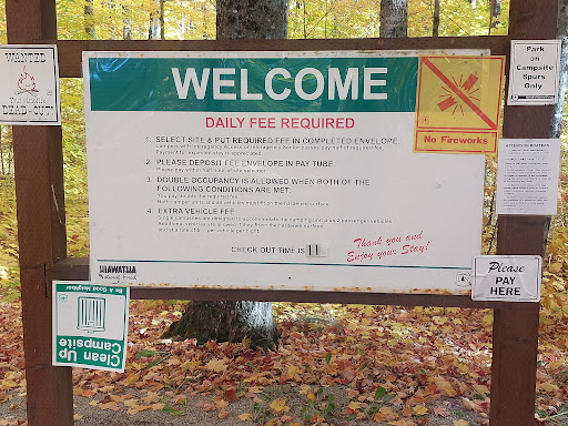 This is a good location, near the highway: the lake is very nice and the campground quite large (there are over 30 sites). I agree with some of foregoing posts: in the U.P. summer, weekends here tend to be busy. I found a lot of big campers (it's just off the highway) using generators and watching TV in the evening. Fairly large fishing boats. Fire pits with signs of yuppie campers: burnt plastic, some things not cleaned up.The highway run along one side of the campground so there is traffic noise, including trucks in the evening. On the + side, there is a nice beach and the trail that goes around the entire lake takes at most an hour and is excellent (I found no one on it, but a bench every 200 yrds). The best sites for nature lovers are the walk in sites 33 and 34 (I think those are the numbers, to the right of the dock when you enter the campground). You have to walk in 50-200 yrds but those are the best sites, furthest from the highway. $18 in August 2017. $16 for the hike-in sites. P.S. Don't burn plastic! And pick up whatever plastic you find wherever, whenever you walk. You'll thank the others who did that for you...