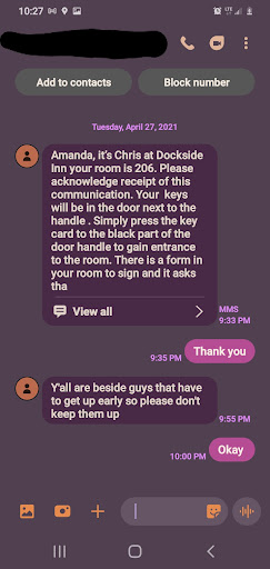 Read moreMy husband and I recently stayed at the Dockside Inn for a wedding in Deltaville. When we booked our room a month or so ago, the website gave an option for early check-in to which we opted for. A couple of days prior to the wedding I called to confirm the early check-in time and the women I spoke to, Chris, was incredibly unprofessional. She seemed very overwhelmed with the amount of people checking in and said she didn't think she was able to allow an early check-in (even though we had opted for it and what I assumed paid for it when we reserved the room), but she would check with the staff. The next day she let me know I was able to check- in early, but said that she sure hoped it went smoothly. I thought perhaps she was having a tough week.|After we checked-in we discovered the key to our room didn't work. The other Inn staff were trying to help as best they could, but it was 90 degrees out, and our door was opened to the outside while they were trying to rewire the lock. As you can imagine, this was upsetting since we were trying to get ready for a wedding. When we called Chris to discuss the issue (they had offered to come back after we left for the wedding), she was AGAIN incredibly rude and condescending. I cannot imagine speaking to another person the way she spoke to myself and then my husband. Unfortunately, This seems to be a common issue with guests staying here.|I highly recommend staying away from the...