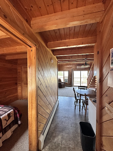 Our family had exchanged our timeshare week through Interval International to Vacationland Estates. We were originally scheduled to go to a different location in North Carolina, but we found in March that the resort had suffered hurricane damage and would not be open in time for when we were visiting in June 2019. This resort had availability and we made the decision to come here. We have never been to Island Falls, ME before and decided to give this place a shot for a week. We had read the reviews of the resort prior to coming and had some concerns of things to do here.||||So you know, the resort is situated in the mountains with a beautiful view. The resort is located in a remote area and we did not have a cellular phone signal from our carrier Tmobile here and could not make calls or receive or send textt messages.||||There are multiple buildings for guests to stay in and each unit has 2 floors with steps to a loft area. We had a 2 bedroom unit with an additional loft area with a bed and there was a bathroom upstairs off of the master bedroom and there is another bathroom downstairs. ||||The unit reminded me of a cabin in the mountains where it was all wood inside and it looked like the type of wood was pine. It was nice. The unit had a full kitchen as well with a full sized refrigerator, microwave, dishwasher and double sink and an electric stove and oven. The kitchen is fully stocked with utensils, pots and pans and also has a toaster as well. Units are provided several trash bags and dishwasher packets underneath the sink. There is dishwashing liquid underneath the sink also. There is a small kitchen table with 5 chairs.||||The living room area has a sofa, recliner and rocking chair and a table.||||The unit has free high-speed internet access as well. We had no issues connecting to the wi-fi and was adequate for our purposes. The resort offers free coffee and doughnuts on Monday mornings. There is also a heated indoor pool, hot tub and sauna. There is no outdoor swimming pool. There is also an exercise room as well for guests and an arcade. The arcade has a air hockey table, pool table and ping pong table. It cost 50 cents to play air hockey and $ 1.00 for a game of pool. Guests can rent pinh pong paddles from the front desk and return them when done. There is also a library as well and DVD's that guests can rent to watch in their units. There is a DVD player in the living room area.||||There is a control for the heating and air conditioning unit in the living room area. This is mainly only for the living room area. There is a floor fan in the closet in the downstairs bedroom and the upstairs bedroom as well that we used. It was a little warm upstairs and we need some air circulation. There is a ceiling fan above the bed at the top of the stairs in the loft area.||||Our unit was clean and comfortable. Units offer satelite tv service through Spectre.||||The resort has a tennis court, basketball hoop and horseshore pits for fun with family and friends.||||The resort has quiet time from 10pm to 8am on a daily basis. Guests need to be quiet and respectful of others. The entire area is very quiet and peaceful to begin with.||||Please note that since the resort is located in such a remote area, you will need to drive to get to restaurants, grocery stores, shopping etc. The nearest food store is Jerry's Foodstore in Island Falls, which is about 3 miles from the resort. The next nearest food store is a Walmart about 40 minutes away in Houlton, ME. There is a grocery store located by Walmart in Houlton. The walmart is not a superstore and does not have everything you may need. Most other attractions like Mt. Chase, Katahdin Woods and Waters National Monument, Seiders Hill-Top Lanes are all anywhere from 25 to 40 miles away via back roads and I-95.||||The resort has onsite laundry facilities and there are several coin operated washers and dryers that cost $ 1.00 in quarters to operate. There is a separate laundry room in building one and there are not washers and dryers in the unit.||||There is a golf course on the premises as well.||||Nearby restaurants include:||||The Slice at VaJoWa in Island Falls, ME||Birchpoint campground restaurant||Craig's Clam shop||Flatlanders||Brenda's restaurant||The Hangar pizza & subs||||The Slice and Birchpoint are the closest restaurants to the resort. Other than that, expect to drive at least 20-45 minutes to get to most of the others.||||There is a gas station Circle K open 24 hours that is located off of exit 286 of I-95 that is the nearest gas station to the resort.on Oakfield Smryna Rd in Oakfield, ME.||||We saw some deer but no moose while staying here but saw lots of birds.||||The shower pressure was good and the bathrooms were clean and adequate. the resort offers towel exchange for bath towels, wash clothes, etc.||||The resort also has planned activities each week so please be sure to check out the schedule to see if you are interested to going to one of the activities.||||Overall, we had a good and relaxing time while...