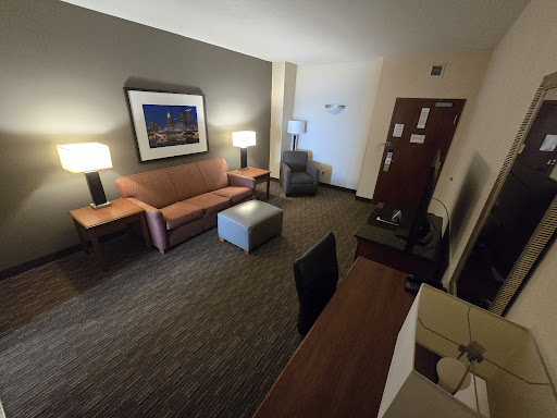 Ā Ā Ā Read moreFirst off let me say Drury is my favorite chain. Have stayed at both Polaris and Dublin in Columbus, but first time at Grove City. First impression was amazing. Lobby looked beautiful and clean and gentleman at the front desk for check in was wonderful. The room was extremely clean. From there my disappointment started. The hotel was extremely crowded and one of the elevators was not working so that caused very long lines and wait times at the elevator and overstuffed elevators which honestly was concerning. Went down to the complementary dinner at 5:30 and the line for both food and drinks was just crazy. Opted to leave and go out to eat. Back in the room the mattress was extremely broken in and extremely soft and uncomfortable. All these hotels are near the highway, but this one especially was extremely loud. Felt like the window was open. The fan in the room was also loud, but did not drown out the outside noise. Woke up after a rough night of hardly sleeping and headed down to breakfast at 9 am. Another long wait for the elevator and then was greeted by another extremely long line. After a 20 minute wait finally made it to the breakfast bar. They were out of both oatmeal and eggs. The waffle station was in the middle of the line and really held up the line. They should have the waffles over by the bar area, as Iāve seen at other locations. Following breakfast I returned to a housekeeping employee about to enter my room despite the do not disturb sign and the fact that I had no checked out yet. Considering I left my purse in there when I went to breakfast, that was concerning. Went down to check out and a woman walked up to me and took my keys and asked if I needed a physical copy of the receipt or was an email fine. I said email was fine. I waited until Monday evening, the following day, and still no receipt. I had to call back and get one emailed to me. Instead of apologizing the front desk employee said did you check your spam box, which yes I did prior to calling. It should not be that difficult to just honor the request. I did finally get the requested receipt. With so many other options in the Columbus area, including two other Drury hotels, I would suggest bypassing this one. I will say this is the first time I have EVER written a negative...