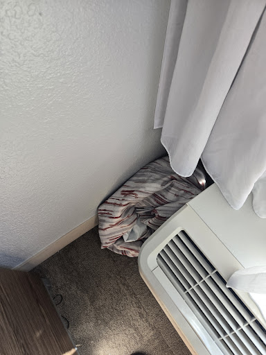 So we had a show to go to and we didn't have time to find another hotel before the show. We went to the show, and when we came back, we spoke to Jeffrey at the desk, and he was genuinely apologetic and discounted the room by about 20 bucks.. it was super late, so we said screw it and decided to just stay and clean what we could to make it bearable..... until we actually tried to sleep, and the air conditioner sounded like it was coming apart every time it cycled on... i wanted to switch rooms, but my girlfriend was just over it and turned it up, so it didn't come on again. Luckily, it was a cool night, so it wasn't terrible.
