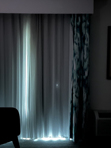 The ugly: room not clean (someoneās night guard was on the floor, bathroom had someone elseās hair and āstuffā on floor, after my morning shower- I had to get a clothes hanger from the closet to reach a towel, and when I did. I buried my face to dry it then pulled back and saw something black- did I miss some makeup? No it was someone elseās dark curly hair, ). The sliding glass doors are open- and donāt shut or open further . So anything can come in. (Person, weather, bugs)