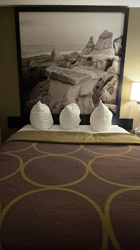 Read moreWe stayed here on a long road trip across the US from Canada. Upon arrival, they checked us in fairly quickly. Got to our room and the keys didn't work, so went back and got new keys.||The room upon first appearance was fine. However, of the 2 lamps in the room (only light source) neither worked and both had broken glass bulbs in them, huge fire hazard. So I called down to the office to get new lamps. I left broken ones outside room while we went out to find some dinner. Upon our return, the lamps were gone but no new ones. I went to the front desk and waited and the lady said oh....she put them in storage, didn't realize we needed new ones???? Uhm okay.... so she eventually brought us two more so we had some light.||The plug situation is iffy in the room at best. The location is okay and there is a mall across the highway which was the one positive there.||It was quite a loud motel...||The next morning I went to make coffee with the coffee machine in the room only to discover that the basket for it was completely missing so unable to make coffee....UGH.||We went down to the continental breakfast and all that was left was 1 yogurt, 1!!! That was at 8am. We left and had to go buy breakfast.||All in all, I would NOT recommend this motel. this is the 2nd Super 8 we have stayed in the past year and...
