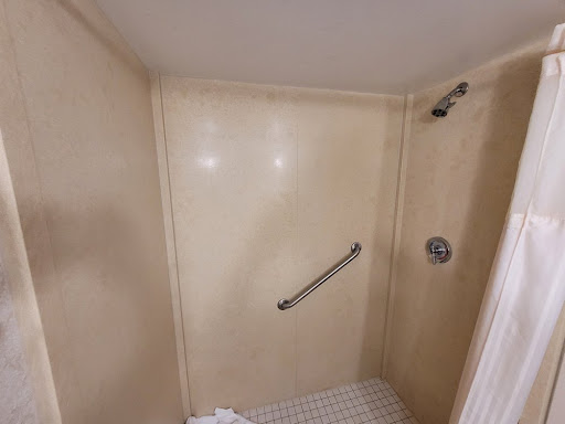 Read moreLoved Jefferson City; hated the hotel. We made a reservation 8 days before our visit for a 1 room suite with whirlpool. When we got to the front desk the woman who checked us in just looked up at us. No smile, no comment, nothing. We asked to check in, she gave us keys, and that was it. No smile, no comment at all. We brought all our luggage to the room and found out it was the wrong room type. We brought everything back down and waited in line, got the same woman, and explained that it was the wrong room type. Without saying a word (maybe she could have said "I'm sorry; let me check on that") she huddled around the computer for 5 minutes with the other check-in clerk, crossed out the wrong room number and penned in another, and handed the keys back, with NO COMMENT. So I said, "is this the right room type?", and she dismissively says "of course!". The room is poorly maintained. The heater sounds like a freight train when it starts up, and is impossible to sleep through. We eventually got the room hot and then turned off the heater for the rest of the night. The bathroom shower has NO shelves place to put anything (see picture). The ceiling vent was hanging by one screw, and the toilet paper dispenser is BEHIND the seat and too far away to reach (and I'm a 6' male). We had to put the toilet paper on the floor (not convenient or sanitary). When we checked out we were met by Sierra (who also couldn't smile), and she gave us a bill for the wrong amount. I then pulled up our reservation on my phone and asked her to check/correct the amount. She said "read that to me". I showed her the phone and the reservation information. She said again, with anger, "read that to me!". I said "read which part? Here's the whole reservation." Her response? She throws up her hands and says "I can't deal with this." She hands the bill to the other clerk and says "you handle it". The other woman (Sheila, I think) was pleasant and embarrassed by the situation. She found out that when they gave us the wrong room when we checked in, and then the correct room, they mistakenly charged us a higher rate than our original reservation. She apologized (the only person to do so among 4), changed our bill, and we left. The WORST service I've ever had from a hotel, and I used to travel extensively for my job. I can understand people making mistakes, but I can't understand an organization and their people not taking ownership for the mistakes, apologizing, and fixing them. We will NEVER be back, and our confidence in any other DoubleTree property is at an...