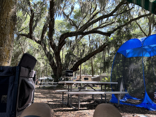 We visited Jekyl Island Campground with our 53 year old Blue Bird Wanderlodge RV and 3 kids, and stayed for 4 days- a weekend and two weekdays. It’s not a “motor coach resort” and that’s a good thing! Bottom line is that if you want to camp with your RV on Jekyl Island, then this is the only show in town. If you want paved spots and luxury amenities- go to Hilton Head and pay literally 3x the price as Jekyll Island. Here there is a slower pace, and the campground has a chill vibe. If you want to be surrounded by massive oaks and pines in a rustic setting you will like this place. All the people and staff we met were nice and the 50 amp service, water, and sewer service all worked great. Didn’t try the cable TV..didn't turn on our tv once. You get an aluminum pick-nick bench and a fire ring as well. Some sites only have 30 amp service. Be prepared to level your rig. Here’s some top tips I would tell someone coming here for the first time: 1) Make sure you bring a screened tent if you plan to eat or sit outside- the gnats and mosquitos are fairly bad. Bug incense / coils and spray goes a long way and you will be miserable without it. Also bring after-bite for your kids cause they will get bitten. 2) the spots are mostly dirt and leaves, so bring a mat to place outside your RV under your awning. Some sites are gravel - ours was not. 3)Some or the sites are close together, some are a bit more spaced out- we were pretty happy with our spot privacy wise, although a neighbor arrived behind us, who hung up all kinds of LED string lights and lit up the entire area. Appears there is no enforced “lights out” policies at this campground as lots of folks had LEDs and awning lights blaring all night. There was no noise, other than the occasional dog- it was very quiet overall. We like it very dark so maybe some people don’t mind light and yes, we do have blackout curtains. 4) There is a swing-set and a small basketball court but other than that, not much for kids. 5) We paid around $55 a night- which was a great deal I thought. We love Jekyl Island and of course will be back...