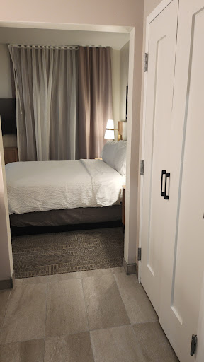 Read moreThis is actually a generally nice hotel, with very friendly and responsive staff, a great Happy Hour on Mon, Tues, Wed, that serves great beer and wine and food, and a nice free breakfast. And the rooms are clean. The main reason that I down rated it so much is because it is a pet friendly hotel, which means that a few people must have brought their dogs into the hotel, and unfortunately the hotel also has lots of carpet everywhere, which means that fleas have absolutely snuck into this place and are hiding all over the carpet. I am an absolute flea magnet, and while my partner did not get a single flea bite, after a week's stay here, my feet and ankles were just covered with flea bites and I also got a few bites in other places as well. Most of these flea bites I think were acquired just from walking out of the room through the hallway and up and down the elevator. I am somewhat allergic to flea bites, and so unlike mosquito bites (I am also a mosquito magnet), and other bug bites which stop itching and fade away after a few days, flea bites for me turn red and angry and form small blisters and then they take several weeks to heal and go away and leave a scar. So yeah, I hate fleas and places that have fleas. Anyway, this hotel needs to absolutely get rid of all traces of carpet if it wants to allow dogs and cats in here - fleas love to hide and breed in carpet. Regular spraying with flea specific (less toxic than general bug killer sprays) would also help. After all these years, I am an expert on this subject of how to get rid of fleas. One other complaint is that the toilet paper here has the texture of 400 grit sandpaper. We had to go out and get some Charmin toilet paper of our own and use...