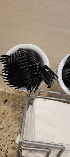 PS: Don't put your eating utensils face up. That's a basic rule of hospitality management. For example, forks go with the pointy sides down. Other people's hands touch lots of the utensils in the utensil container when they are grabbing something. I don't want their germs on the eating end of my fork or spoon. Interestingly, the butter knives or physician correctly with the food contact side facing down into...