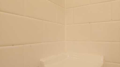 The bathroom shower walls were cloudy with soap scum/hard water stains, except at the very top where soap and water hardly ever touch.