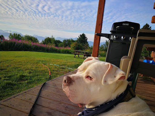 That view! That grass! Those cabins! I mean Idk where to even start. This place was the highlight of my entire vacation and we did most of the things that people would go to Homer for. The cabins are small but bigger than most hotel rooms. The mini kitchen is well stocked with coffee, utensils, dishes and cups. The rooms are so clean, I felt like I was the first person to ever be inside this place. Its dog friendly! My little fur babies had the best time too. The beds are big and comfortable. Lots and lots of pillows and blanket. Caught a nice ocean breeze and drifted into dream world every night. The nights are free of most light pollution so the sky fills with stars. So even when the sun goes down and the breath taking view of the glaciers goes away, you can just look up and hope you can catch your breath again. Its close to nothing but near everything. Short drive down to the spit or historic downtown. The grass was like the lawns of my child hood. It was so nice and well kept, and just that perfect shade of green. The length was long enough to feel right under your feet. I loved just siting in the grass. This place was perfect for my family and our dogs. There isn't a doubt in my mind that...