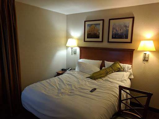 This is the first IHG hotel I've encountered with really uncomfortable beds. Mine was very hard and made noise every time I moved. There is a Walmart behind and another shopping center in front so there is considerable traffic noise, especially from heavy trucks. I really never got a decent rest in the place. I found the HVAC incomprehensible. No matter the settings, you either roasted or froze. The room itself was crammed full of furniture and had no real work space, just a tiny little desk. On a business trip, I had no place to put anything that I didn't want to eat dinner on top of. I didn't do much food prep, but a lot of the pans and utensils were missing. The desk could probably have replaced them if I asked. The recliner took up all kinds of space and was not at all comfortable to sit in. Like a lot of the place, worn out. Wi-Fi was in and out, irritating, but not the worst I've seen. The carpets needed cleaning.