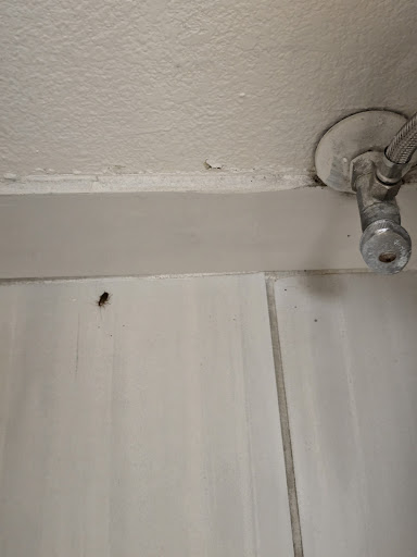 the water stain below the bathroom sink from the sink trap still leaking. Again could clean it up with a simple wipe of a towel.