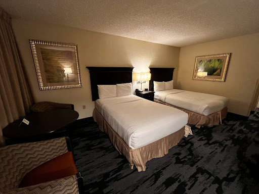 The positives are that the room was clean. No bugs like others reported. The walls are made of brick so I didnât hear the neighbors. The furniture seemed newer and the beds had a pretty wooden headboard. Granite countertops in the bathroom and TV stand. Maybe I just got unlucky with all the noise but I wouldnât stay here again, and itâs not...