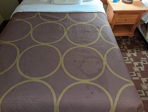 Read moreBy far the worst hotel I have ever stayed in. Not clean at all. Hallways are not welcoming, meaning stains lead you to your door. When in the room, I pulled back the sheets and found a frickin toenail... a freakin toenail! As I pulled the sheets back further, there was a bloody stain, how did the maid miss this! Needless to say, I pulled the sheets and blankets off and slept on the mattress cover. In the morning, I requested that the front desk have the maids give us some fresh sheets. In the morning, I laid the sheet on the bed with the obvious blood stain on top so the maid would switch the sheets. We came back at 10am to the sheet put back on the bed! The bed looked like it was made by a toddler and I immediately went to the front desk to complain to the boy that was there. I told him specifically about the blood stain and the toenail and He apologized and said he would have the maids go back and give me clean sheets and blankets. I thought the situation would be taken care of but when we got back at 6pm, the bloody sheets were still on there. I went down and complained to the young lady right in front of another potential customer about the whole situation that I had been dealing with since the night before. He of course heard it and walked out telling her he would not be staying after he heard the explanation that the front desk gave me. The front desk explained to me that the hotel policy is not to change the sheets with new customers unless they ask for fresh sheets! They only change the sheets twice a...