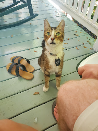 For the high price, I was a little disappointed. The room we stayed in was on the 3rd floor of the old mansion. The floor is -really- dusty on my feet (which are now black), I moved the ottoman and there was a square shaped patch of dust that is pretty thick (don't bother mopping if its that yellow bucket with the rag mop thing. All that does is push dirt around and never actually gets clean.) Also, there are no shower curtains, so not only does the water spray all over the floor, but there is a horrible draft that makes you shiver constantly while showering. Also the shower head is cheap motel quality, so it gets only spray/mist on you everywhere except for where you want it. Seriously, this room is $250+ a night and you couldn't invest under $50 for a better shower head. My fiancée tried washing in the tub, but that sprayed everywhere too. No wonder the chair next to the tub has water stains on it. Also the tub takes forever to drain. Like 30+ minutes. But at least the water was hot...unlike my parents room who had no hot water. There was also some orange/pink mildew under the shower step. There is no place to eat in the room if you like breakfast in-room (as in, no table). Outside, the building could use a paint job, its becoming run down looking instead of shabby-chic. The grounds have absolutely beautiful gardens, the pools are lovely. The windows need to be thicker, like...noise canceling. There is a theatre across the street and when it let out at 10pm you can hear -everything-; cheering, yelling, laughing, and the bar down the street It's very loud with just regular road noises. Oh yeah, and a lovely argument outside where a man shouted "leave! Just leave!" Prime entertainment. Luckily the heat has us feeling pretty beat, so we got some sleep. Pros: The staff is very friendly. The cats on property made me feel at home. They even came in to our room and had some snuggle time. We are pretty homesick and miss our own cats terribly so this helped soothe the ache. Staff, please take care of the cats! They are wonderful. They seemed well groomed, soft coats, loved people, so hopefully they do ok there. The included breakfast is nice, but mostly starch and some fruit. Loved the fresh squeezed orange juice.