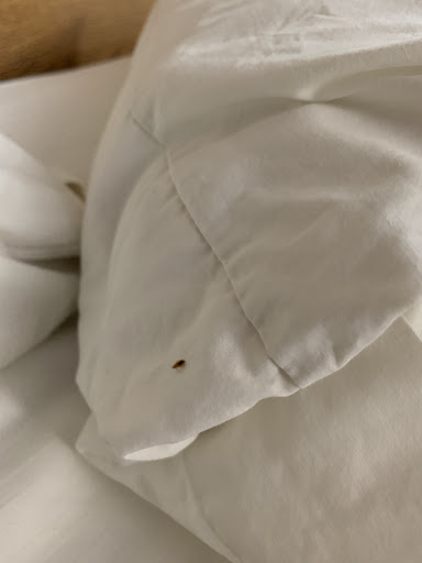 We were just getting settled in and noticed a bug crawling across the pillow. We immediately flipped it over and found a spider, blood on the pillow, and the bed bug. We trapped it and I contacted the front desk immediately.
