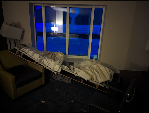 The room was large enough to be comfortable and feel like someplace more than just to sleep and change your clothes. It also had a microwave and mini fridge in it. The shelves were missing from the fridge but wasn't an issue for us as we only kept a couple sodas and some juice in it.