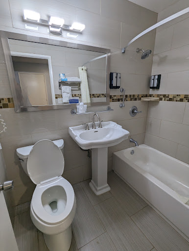 The room smelt clean, fresh and had brand new carpeting and paint. The entire bathroom had been remodeled in tile, it was white and brightly lit. The bed was made beautifully like a Best Western does. I do love Best Western. Best of all, we had a good night of sleep. Yes, you can hear traffic but not if you blast the AC. You are also in the same parking lot as a Shell Station (beer) and a restaurant that opens for Breakfast at 7am. Which was perfect for us since we rise early.