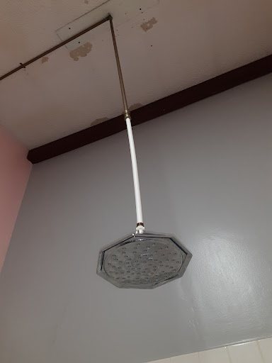 Bathroom ceiling had brown marks on it, and some dirty grout in tiles. Needs some cleaning.