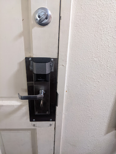 Had to go to the lobby to let the person behind the desk when we checked in that the door is not opening. He was very helpful and explains you have to pull the door toward you when siding your card, and then push it open to get in.