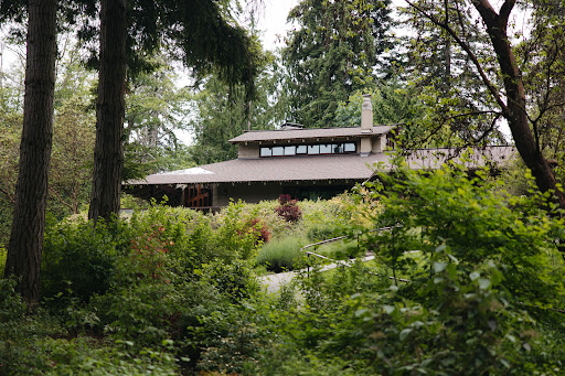 There is a newly built dining hall that fit our 100 guests no problem, complete with a catering kitchen and two lovely guest bathrooms (accessible!). The dining hall itself has high vaulted ceilings, and glass garage-style doors that open onto the patio, which gave dinner a nice open feel. It's the perfect venue for the Seattle area, because all the places guests will be are rain-friendly, while still giving you an outdoor experience.
