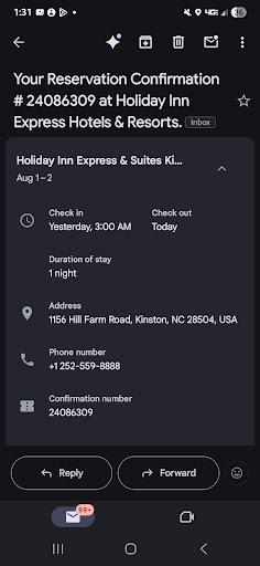 Read moreMy experience happened on July 19th and 20th. I will be returning to Kinston in the next couple weeks for an overnight stay. My experience at the Holiday Inn was so sad that actually I am just putting a review in now. I expressed my complaints to the hotel staff who was supposed to have management call me... unfortunately never happened. When I got ready to retire for bed which was late around 11:30 my sheets were gritty and hair stained. It was as if someone had gone to the beach and got into bed without taking a shower. That would indicate that the sheets may have been on more than one visit. The person at the front desk was very kind and was changing my sheets on my king size bed at 12:00 a.m. She was very kind and very apologetic. No excuse! Photos of the breakfast were absolutely atrocious and should have gone to the trash. It was as if the person who put it out didn't care and her attitude was even poorer. I did complain about the breakfast to the person who was responsible on that weekend for customer care. She also took pictures and said that she would report it to management because it was inexcusable. How can you serve overcooked, dried out, poorly prepared food. The pancake machine wasn't working as a last resort of some type of decent breakfast. Pictures are posted. I did put a complaint in on company's site but never got a response. The person preparing the food had a very poor attitude and made a complaint to me that I heard that somebody's been complaining about my service. I said yes as they should...||At this rate it was just easier to just chalk it up to a terrible experience and I wanted to completely put it far out of my mind. However, returning back to Kinston for this next trip coming up brought up emotions in me that I thought I had put behind me. Actually I think I'm as irritated now as I was then and actually did not put it behind me at all because I should not feel this way. No management call. No response to my complaint.... I hope the pictures are viewable and this was a total of 2 days so after the first complaint, the second day was even worse.||||Still very irritated at the lack of...