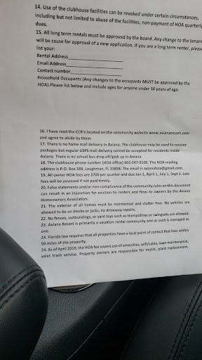 Read moreI do not recommend this place. For starters it states that they have 24 hour guard's which is a lie, because i was able to come in with no guard's there watching the gate. To top if off the rules of this place is out of control. You can't recieve mail to the front of your house ( regular mail, ups, or post office boxes), all mail most go the the front desk and you have to pick up there. In which is not convenient because the club house isn't 24 hours. So if you come at 10p and are waiting on a package when you get home, well sorry you will have to wait until the clubhouse open at 8am. Two you can't park your car in front of your house because they say so if not your car will get towed. In which is crazy because if your car gets tow you have to pay cash only. In case your car gets tow no one in the gate can help you because to there understanding they have no idea about the towing company or rules. The tow company is just driving around the whole time waiting for a moment you walk in your house to tow the car in less then 15 mins If you a home owner and want to paint the outside of your house you can't unless they approve of it. Its crazy that someone would buy a home here pay almost 300,000 for someone to put rule on your property of what you can and can't do. And it is not close to attraction, malls or restaurants. I don't recommend this place for a rental, vacation and for someone interested in buying a home. The last thing you want when coming on vacation or for a life change is someone telling you what to do everyday. They have 24 rule you have to obey by no Matter what...... Stuff isn't friendly or welcoming and to top it off they dont even under there own rules. Anytime i asked a question they responded with thats a good question im not sure. Really not sure so who the hell in charge of these rules im confused. Rule number 7 is funny how they not responsible of any damage or loss vehicle but they the one who allows a tow company to drive around the community at all times. So if my car gets a scratch from the tow they not responsible 🤦🏻♀️. Ill rate a zero if i had a chance but the lowest is a 1...