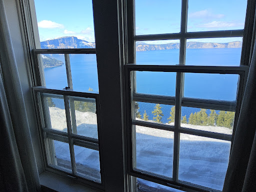 It's not about the hotel, is it? Crater Lake is a wild place, with dark history and dark legends of mysterious forces. I don't believe in any of that, but there was a weird vibe this whole weekend. In all fairness, it snowed overnight on July 10th (approx 3 inches), and they cancelled a lot of tours. It likely impacted the entire operations of the hotel in ways I cannot begin to conceive, but it was an annoying madhouse, and not very "National Park-y". But the issue here is, after staying in multiple Xanterra properties all within a string of 3 weeks, this one stands out as an outlier to the experience of hospitality that Xanterra is trying to accomplish. Even an experience with management was antithetical and far more awkward than it should have been, but it just seems to be a local staffing issue. I am the first to defer to the complexity of running a seasonal spot, where capital improvements are likely a scheduling, budgeting, and planning nightmare... or where hiring people for a 3-5 month season has got to be insanely difficult. But Glacier and Yellowstone were operating at a different level, from product to service, and that's just fine. But just adjust your expectations. You would hear staff mingling at the desk and chatting at volume about guests, issues, casual conversation, etc. The main lobby is wildly impacted, and they do their best to service the MASSIVE influx of random tourists that come in to visit. The issue is likely identifying guests who are enjoying the place, waiting to check in, or just wanting to relax in the public areas (because the rooms are the definition of paired down) vs tourists passing through, and it might make the employees jaded. The lobby servers are inundated from the morning rush on the complimentary coffee, to the irish coffees and wine being ordered throughout the day. It's likely an issue of space, vs staffing. The staff was friendly, and eager, but not very well trained. The dining room staff had some Xanterra veterans, who stood out and truly made our dining experiences, vs some seasonal locals who were poorly trained and disconcerting. The hotel felt dark and somewhat run down, but again, I need to defer to the odd weather. The view room was fine, but even on the 2nd level people could peer in and observe us from the path that was right out the door. The rocking chairs, outside, are fantastic, but service is a bit slow. The hiking trails will undoubtedly bring out your vertigo, and I have to say this place WAS INSANE. I would search the history of deaths in the park. From the natives who say there's weird energy in the area, to the bizarre stories, it will make for some wonderfully sleepless nights. I have nothing but respect for them, but the seasonal staffs lack of training and general awkwardness alters this national park experience. I am being FAR too critical, because of the respect I have for what they do... but just alter your expectations a bit if you've been to other Xanterra or National Park properties, and go out and...