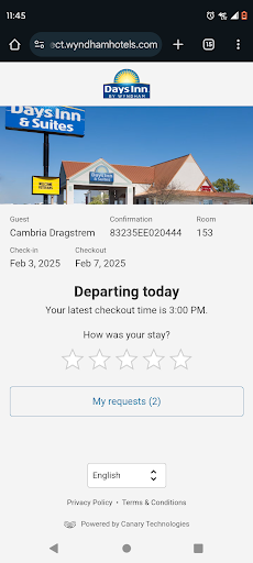 The man on the phone was constantly interrupting me for a full minute as I was attempting to explain to him that the times he had called earlier in the day, the phone call showed up on my phone as from "HMHI", not Days Inn. He then proceeded to hang up on me. Apparently if you book with Wyndham rewards points they cancel your reservation at 9PM if they can't contact you during the day. Guests should be made aware of this when the reservation is made. I was never informed of it. Having never heard of this kind of policy before, I believe it's in violation of Wyndham's policies. Wyndham has been notified.