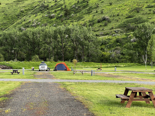 At surface level, the campground is okay for short stays but for long term stays, I do NOT recommend staying here. It’s in the middle of the marshlands so there are a TON of mosquitoes and you will be eaten alive at all hours. The hot spring pools are small and chlorinated. The building front is missing siding and the grounds to the far left has a mound of rotted wood/trash. They report being pet friendly on their website but there is nowhere to let your dogs off leash to play or run. The front lawn area is marked on the map as the dog bathroom area but it’s often being sprayed by sprinklers during the day. They would benefit from having a dog park on site as many campgrounds do these days. The campground reports that sightings of dogs off leash results in automatic removal from the campground. Several campers were letting dogs off leash at times in the morning and it appeared nothing was said. Additionally, multiple people would walk through the campgrounds and allow their dogs to poop without cleanup with no word said from the campground staff. It appears the staff pick and choose who to harass. Most of the La Grande locals have nothing nice to say about this place and its owners/management.