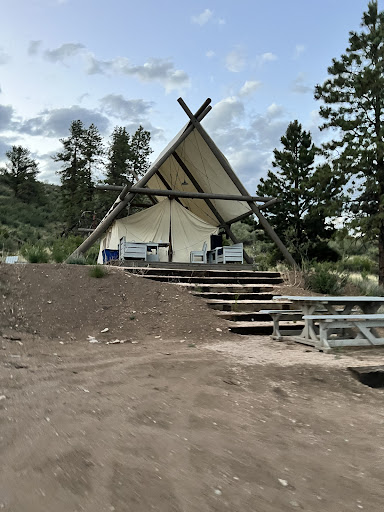 Read moreGreat mid range price for glamping. This place is about an hour west of Colorado Springs and is pretty isolated, but only about a 5 minute car ride from eleven mile marina, which has great fishing, the ability to rent boats, kayaks, paddle boards, etc. The camp site is very well maintained by its small and extremely personable staff. It is family owned and you feel the pride and care. because this is glamping, you arrive and are greeted when you drive up. You are checked in, by the owner or his wife, assigned a golf cart to get around the site, and the staff unloads your car and takes your bags up to your luxury tent. They also take you dinner order upon arrival. The menu is a little limited, but is well executed, and they will make adjustments as requested, especially if you have special needs. Make sure to request in advance so they can prepare for you. Each meal is brought to your tent and you can eat inside or outside at the time of your choosing. If you are going on day excursions, they will pack your breakfast and lunch as needed. Our favorite dish was the fajitas and the grilled items as a whole. They do a good job of matching the menu to the camping experience. Now the tents and facilities. The tents are built solidly with a canvas second roof to keep water and snow from getting the site wet. The bed are comfortable, which is very nice. There is a wood burning furnace inside of the tent which allows you to stay warm on cold nights if you like, i mean you are camping with the option of how much nature you want to deal with. We were able to comfortably sleep 4 in a two queen bed tent. As mentioned. There are 2 tables to eat from. One of which is inside. This is a great space for playing games, or cards as a group at night. There is good solar powered lighting in each tent. Next to the tent is a propane fueled fire ring that is great for stargazing, eating dinner around. Enjoying some of the alcoholic beverages that they serve (beer. Wine. Cocktails to your liking). Again, these are all brought to you by staff that you can reach via walkie-talkie. Lastly, there are very good bathroom facilities. There are well maintained and very clean portables closer to your tents, and then there is a full bathroom with toilet, sink, and shower, with towels and soaps for your use. Like the towels and soaps, there is good quality TP, which is always a nice luxury. If you are not into roughing it and would like a good quiet getaway, I highly recommend Black Tree. You are paying for the introductory camping experience, the amenities of room service and warm showers, and of course great scenery, hiking, and fresh air unlimited. If you are worried about COVID. The staff wears masks, they sanitize any shared space and equipment, and each bathroom is for your tent only. The tents are very generously spaced as well. This was a great trip, a fantastic experience, and made me feel like it was a good value. One side note, try to remember that all of these guys and gals working here seem to be awake and serving you all day. Although not required, a good tip for the staff would be a great way to appreciate their efforts. They...