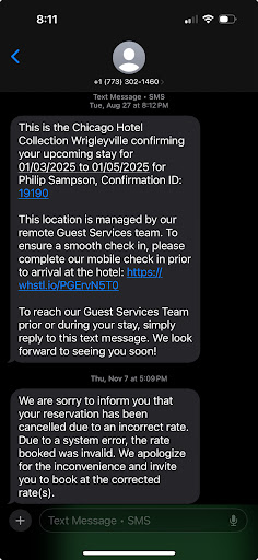 Read moreMonths ago I booked the only hotel available for a recent concert we went to over the weekend, I like to be within walking distance to venues since we take the train. The walk to Wrigley Field was very close so this gets a great rating on that, howeverâŚthe customer service and everything in between was absolutely horrible the day we arrived. Two weeks before our check in I received a text saying if I didnât do my pre check within a certain short time frame I would lose my reservation. The way the text message was laid out it seemed like a scam so I called the hotel and spoke to this really nice woman who said that it definitely was them and told me if I forgot to fill out the form or if it wasnât working I would have no problem keeping my reservation and it would be taken care of at the hotel. I still did my pre check in within the time frame. It is now the morning of arrival and I am driving two hours to the train station when I get a text message at 10 am eastern standard time saying that my cc info was missing from the form and if I donât fix it by noon my reservation will be canceled. Of course Iâm freaking out and I had my fiance click the link since I was driving and he said everything was all there and we didnât understand what was going on. He took screenshots of the portal and we tried calling the front desk several times and no one answered. Once we got to the station at 11:30 EST I sent over the screen shot because we hit a couple dead zones on the drive. I click the link to go into my reservation and it says it couldnât locate my name or number. I am panicking. I waited and waited and no one texted so I attempted to call again, on the third call I get this woman who asked what location Iâm calling for, I told her Wrigleyville and she said âyes we cancelled your reservationâ it wasnât even noon EST or CST and within an hour of me responding and not the hotel they just canceled it. The woman I spoke to made it seem like there was nothing that could be done so I rambled and she finally said my bank was rejecting the payment. I have never once had my bank reject a payment when it seems like itâs fraudulent so red flag number like 3 for the hotel. I frequent Chicago since itâs my hometown so Iâm always there. I asked the woman if I could give her another cc and she said she cant process payments over the phone and I told her I didnât know what to do, she went silent and said âdid you get a text from your bank I just ran it againâ maâam I thought you couldnât do that over the phone but yes I did I told them it was me and she tried it again and it went through. So red flag 4, if the payment was attempted prior I would have received a text earlier from my bank but I didnât so my payment wasnât even ran. We got into Wrigleyville at 1 and had no idea a massive bar crawl was going on, we go up to the hotel and a sign says âdoor is locked at all timesâ and we peaked in and no one was in the lobby, so to kill time we got a couple drinks at the movie theater, itâs now 3:30 and I havenât received a check in text. I called again and the woman said if I came before 5 she could check me in at the desk, I told her Iâd be there in a minute and we immediately walked over and there was a father daughter duo standing in front of the hotel looking equally frustrated and confused. We all shared our grievances about checking in and agreed we were all very disappointed. We were eventually let in by another guest walking out. We still waited for someone to come to the front desk and we finally got checked in. The room was nice, king size solo room. Good enough for one night but I wish I brought my own shampoo/conditioner. On the morning of check out we rode the elevator down with this mom and daughter and no one was at the desk again and we were confused again. I mentioned out loud that this was not a pleasant experience and the pair also chimed in and said they were displeased and will never be returning. Every person I spoke to had the same feelings towards this hotel. Stay clear...