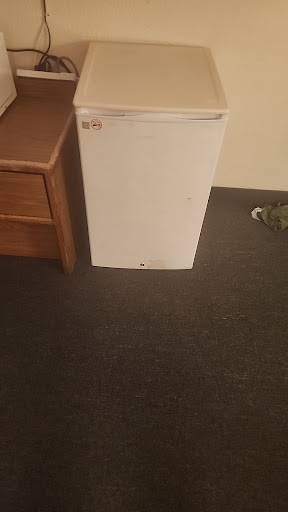 Read moreIt looks nicer than a lot of the hotels I'm used to staying at up and down Colfax and the front desk lady is in the middle for me can't really say that she is overally happy and excited you're here but not overly upset The rooms are decent size but did notice some dead cockroaches in the bathroom in the corner was made a little an easy for me to sleep in the room having really touched the bed but it looks to me like whatever room I made has a king size bed could use some updating in the rooms to the ceilings and the curtains and the linens are a bit dated comes with the mini fridge in a microwave so it gives off the extended stay vibe all in all in my opinion not bad it's not the worst I've ever seen but it's not the best. They do sell some stuff for travel in the office if you forgot it and it's all pretty much priced at a dollar so if you forgot some shampoo or some razors I mean it's not very many hotels or motels have an option like that.