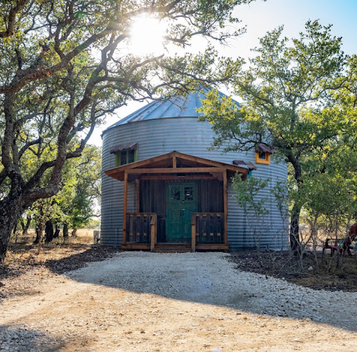 La Ponderosa Vintage Grain Silo, Lampasas: The Vintage Grain Silo is very cool and interesting. Located a short drive from town. The first thing you notice is the front door, which is vintage Egyptian with keyless entry. The stained glass windows are from overseas ranging from late 1800 to early 1900 and are a beautiful touch! The silo is decorated tastefully. You’ll find stained glass succulents throughout that were created by the owner’s mother in law. Leather couch and two wing back chairs are great for conversations. A tall guy (or girl) can nap on that couch! Little touches like the folded and stamped edge of the toilet paper, and vintage phone table, shampoo and body wash in the bathroom are nice touches. The towel warmer is a toasty bonus! That counter top is gorgeous! There are games, such as dominoes and cards. I think these are great for passing time vs having a TV! Great kitchen with frig, toaster oven, Keurig and French Press. Great coffee, cream and sugar provided. Large, pottery mugs are handmade by the owner’s wife. Just bring pastries for breakfast and you’re set. The lighting on the stairs for nighttime trips downstairs is great! The brands on the stairs were imprinted using vintage branding irons that the owner collected. The Murphy bed in the living room is comfy and would be great for a third guest. Just scan the QR code on the wall for set up instructions. Upstairs queen bed is on the firmer side and very comfy. The property is gated for security and peace of mind. You’ll get a code before arrival. Owner has Barbado sheep on the property, so no dogs allowed. There’s a fire pit with Adirondack chairs to enjoy on cool nights. It’s so peaceful here. Recommended for 2-3 people wanting to get away for some peaceful, quiet time to recharge and relax. Note: no tv but does have WiFi. The silo is air conditioned and has a very large and unique ceiling fan. The owner has left a notebook on the coffee table with instructions for operating the AC and other helpful tips and recommendations for eating out and exploring Lampasas.