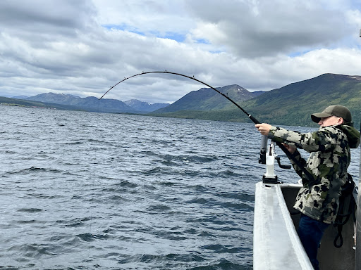We spend most days on the boat going to Nick proven fishing grounds, but Nick also has a knack for finding the new spots. One day after we limited out on Halibut, we were itching to get hooked up with some King Salmon. Although the season was mostly over for King’s, Nick had some tricks up his sleeve and was able to get us trolling for King’s and within the first 10 mins had a decent size King on the line. After an hour of trolling, we brought in 3 more King’s, all very large and an absolute blast to fight. But while we were trolling for Kings, Nick is always looking. So, after we were done trolling, Nick wanted to try out a rock bed he spotted when we were tooling around. We dropped 4 lines, and all 4 hooked up right when they hit the bottom, Linn Cod on all lines!