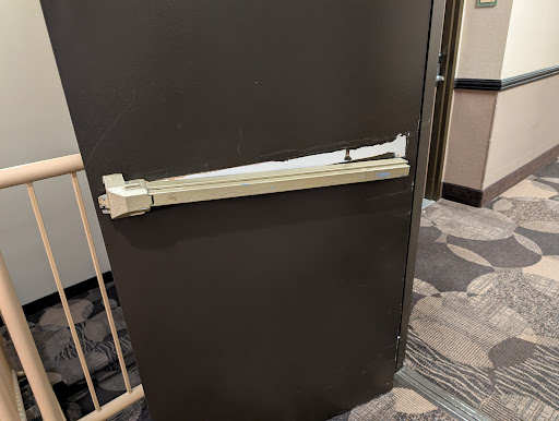 The general manager claimed that the back parking lot, where the fire almost happened, wasn't their property and not their responsibility. Yet, they have a guest entrance to the hotel coming from that back parking lot and a camera facing the parking lot. There were a lot of sketch cars and people just parked in the lot. Guests could be harassed or assualted, and yet Mya claims they are not responisible for anything that happens back there...she is very mistaken and wrong about that claim. Even the cleaning staff agreed with me, that they are reponsible for what happens back there. They have a dog 'bathroom' area and smoking section in the back, as well as cameras that are clearly not monitored by any security. The reckless driver who burnt his tires in the back lot, causing smoke and rubber toxins in the air, could have been prevented if they were properly monitoring the cameras and property. I was shocked to find out that Faith and Mya didn't do anything to investivate the car and driver, as it could have been a hotel guest (most likely it was, as several cars were parking in the fire lines and blocking the hotel entrance in the back during our stay, which was also a wheelchair access point).
