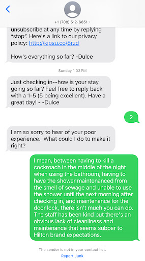 Read moreI understand the rules of many Hilton policies, surrounding F&F discounts, I worked for Hilton. I also understand the level of service that Hilton expects from Front Desk personnel. There are times when a FS Associate should feel empowered to make a decision that is in the best interest of the guest, if it’s not hurting the hotel. I was dealing with airline delays due to bad weather in Denver and just needed my husband to be able to check in until I could get there. I offered to send my itinerary to show I was coming, because he arrived before me, I even offered to pay for all nights up front. Maria and Adriana, would not budge and Maria made me a pay a full night by noon or she was gonna cancel my reservation. I’ve always paid at check in and have never had a Hilton property threaten to cancel my reservation for not paying for a night by noon the day of check in. I felt like she was being spiteful and petty and the fact that there was no manager or person of authority to escalate to, made it worse. I was also advised by Adriana that she reached out to the manager, who was not in, and they supported not allowing my husband to check in is super unfortunate. The only thing offered was for me to make a separate reservation for my husband, even though I paid for a night already, and I could check in tomorrow. Why!!!! I will be there tonight. In all my Hilton experiences I’ve never went to the extent of leaving a review, because I’ve always dealt with reasonable individuals. Stuff happens, weather happens, life happens and the fact these young ladies didn’t see this as an opportunity to go above and beyond, but instead really go out of their way to say No, with a smile and even escalate with the threat of cancellation, left a horrible impression of this particular property, I’ll never...