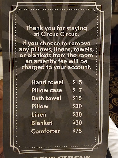 Read moreNever seen a more dirty hotel on this scale, the floor is absolutely filthy, our room was liveable but very outdated, we spent alot of money to stay here, we were charged fees and early check in that bumped the cost of the room up to more desirable conditions at other hotels in the area, My wife broke her foot 2 days before we flew in and the hotel staff wanted to charge for helping with luggage cruches and wheelchair which my wife was confined to ride. Further more the staff at the hotel sent us on a 40 minute run all over the hotel to try and find our room. If it wasn't for a security guard we would still be looking for it. To top it all off one of the elevators instead of taking my wife and myself an another couple down to the 1st floor it joy rode us to the top the back down, 3 times and never got us to the 1st floor, we had to change elevators in order to get on the 1st floor where we could find food. I truly over spent when I booked this hoter...I guess that is why they call it Circus Circus 🎪 it's a total joke, Motel 6 at least leaves...