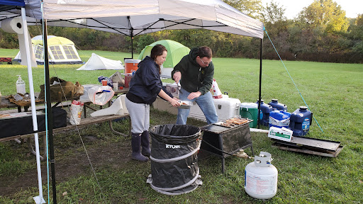 Large campsite, no trees, has water, no electricity, pit toilets but regular facilities in walking distance. No pavilions but has tables. No grills but park...