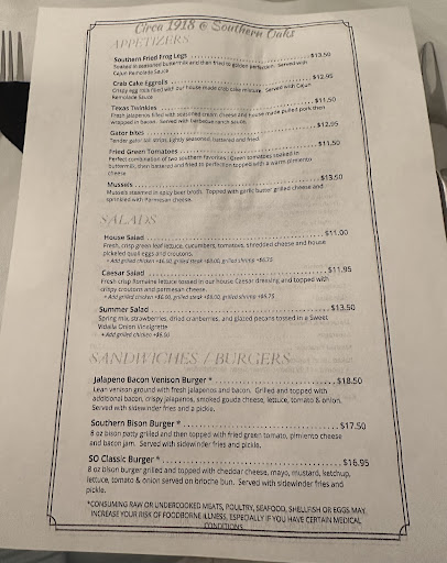 Read moreCirca 1918 @ Southern Oaks is a restaurant with delicious food, beautiful decor and Rachel is an outstanding server. I am visiting from Texas and I highly suggest this place. Their frog legs...